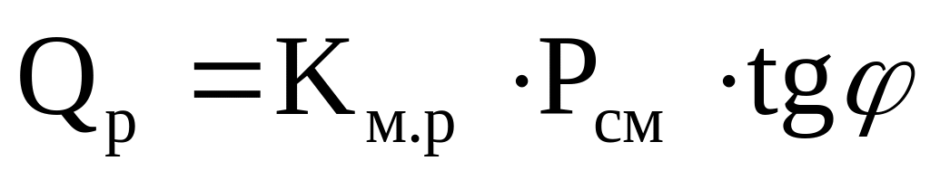 Для магистр. шинопроводов, ВРУ, на шинах ЦТП и при определении реакт. мощн. нагрузки в целом по цеху, предприятию: Qp = Pр∙tg . (9)