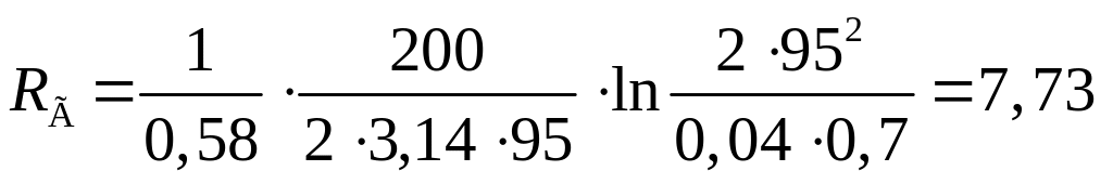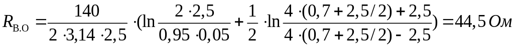 Принимаю расстояние между вертикальными заземлителями равным их двойной длине, тогда Ки.г = 0,58, l =19 ∙ 5= 95 м. Определяется сопротивление горизонтального заземлителя по (2.45):