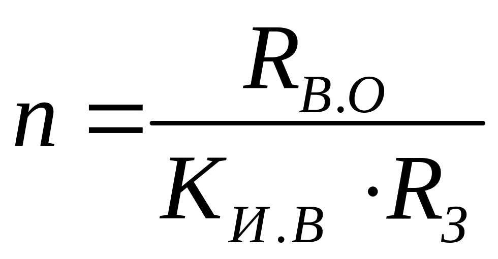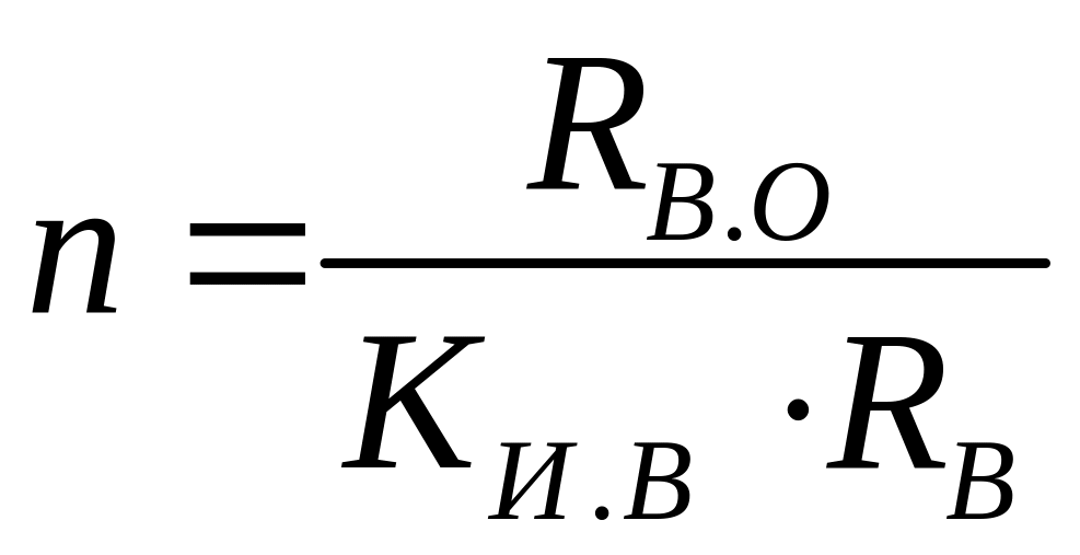 4) Определяется примерное число вертикальных заземлителей при предварительно принятом коэффициенте использования вертикальных заземлителей Ки.в по формуле: