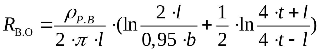 5) Определяется сопротивление горизонтального заземлителя Rг. При применении горизонтального заземлителя из стальной полосы Rг определяется по формуле:
