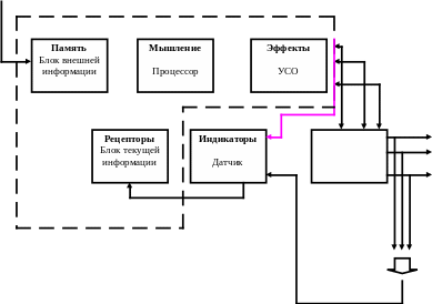 Воздействия на органы управления эффекторами для реализации принятых решений.