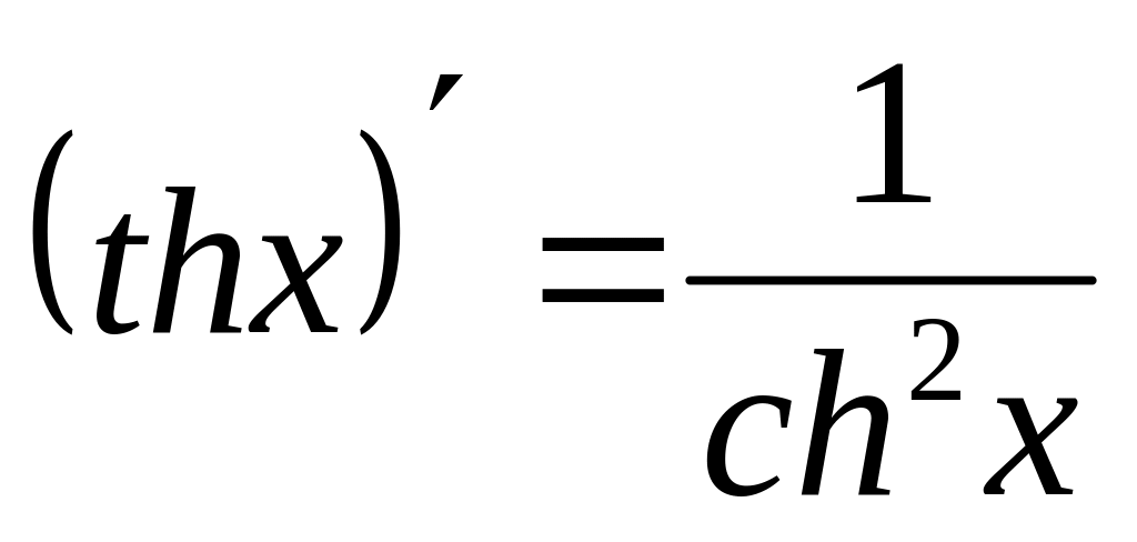 Формулы производных гиперболических функций получаются из производных показательной функции с помощью правил дифференцирования суммы, частного и сложной функции: