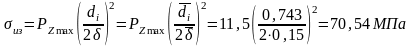 3.2.4. Рассчитываем напряжение изгиба при надевании кольца на поршень: