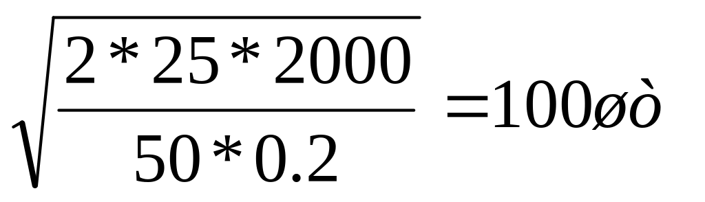 44. Вартість подання одного замовлення складає 25 гр.од., річна потреба у виробі — 2000 шт., ціна одиниці виробу — 50 гр.од., вартість утримання виробу на складі становить 20% його ціни. Оптимальний розмір замовлення складає (одиниць):