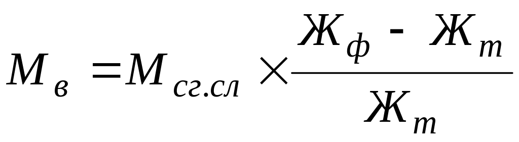 где Мв - масса воды, необходимая для нормализации, кг ; Жт - массовая доля жира в сгущенных сливках после нормализации, %; Жф - фактическая массовая доля жира в сгущенных сливках до нормализации, %; Мсг.сл. - масса сгущенных сливок, подлежащих нормализации, кг.
