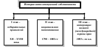 История ИС прошла три периода своего развития – избирательных привилегий, национального патентования и интернациональной охраны прав.