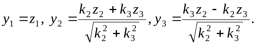 записуються в стовпчики матриці . Ця матриця ортогональна і є матрицею переходу від початкового базису до базису .
