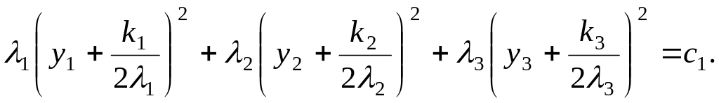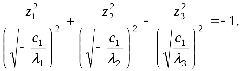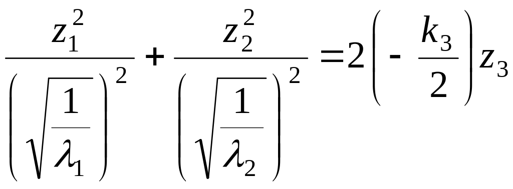 У рівнянні поверхні другого порядку зробимо заміну змінних за цією формулою. В новій системі координат поверхня задається рівнянням: