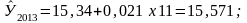 Так по данным табл. 5, на основе исчисленного ранее уравнения экстраполяцией при t=11 можно определить ожидаемую урожайность зерновых культур в 2013, ц/га: