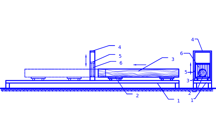 1.Станина 2. Тележки 3. Бревно 4. Портал 5. Рама 6. Ножевочное полотно