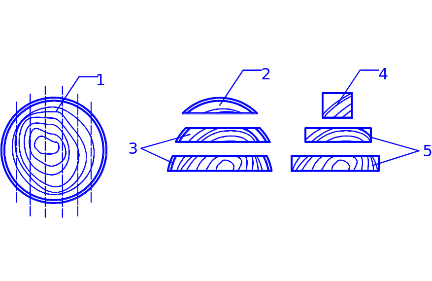 1. Бревно. 2. «Горбуша». 3. Необрезная доска. 4. Брус. 5. Обрезаная доска.
