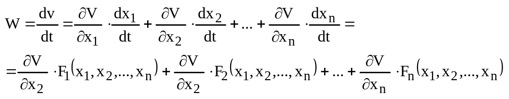 Если W имеет тот же знак, что и V , то система будет неустойчива.
