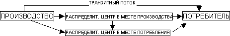 Рассмотрим каналы распределения, по которым из конечного производства через систему распределительных центров попадают в конечное потребление. Производство может выбрать различные каналы распределения (рис. 7).
