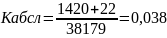 Также важным показателем, характеризующим платёжеспособность и финансовую устойчивость предприятия, является коэффициент абсолютной ликвидности (Кабсл).