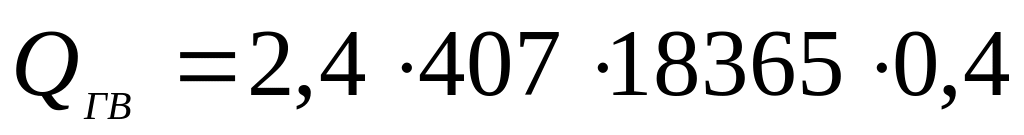 Максимальный тепловой поток QГВ, Вт, на горячее водоснабжение жилых и общественных зданий равен: