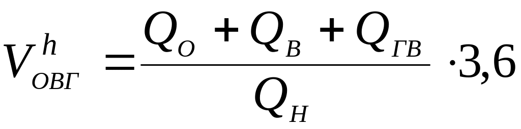 3.2. Максимальный расчетный часовой расход (м3/ч) на отопление, вентиляцию и горячее водоснабжение жилых и общественных зданий определяется по данным [5].