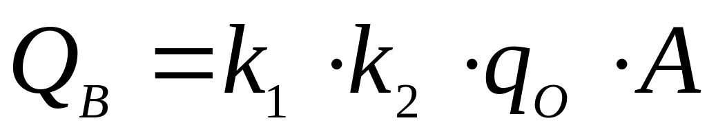 Максимальный тепловой поток QВ, Вт, на вентиляцию общественных зданий составляет:
