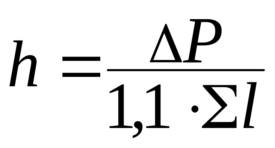 Находим средние удельные потери давления h на участках по главным направлениям потоков газа от ГРП до нулевых точек: