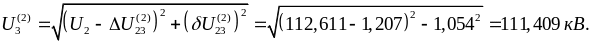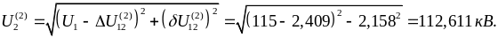 Уточненный на первой итерации расчета модуль напряжения узла 2,