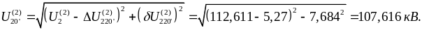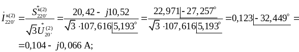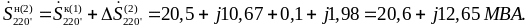 Поток мощности в конце участка 2 – 20 на второй итерации расчета примем равным мощности нагрузки узла 20, вычисленной по статическим характеристикам в соответствии с напряжением на ее шинах, полученном в первой итерации расчета,