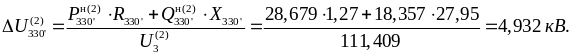 Поток мощности в конце участка 3 – 30 на второй итерации расчета примем равным мощности нагрузки узла 30, вычисленной по статическим характеристикам в соответствии с напряжением на ее шинах, полученном в первой итерации расчета,