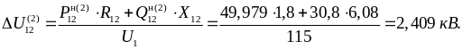 Продольная составляющая падения напряжения на участке 1 – 2,