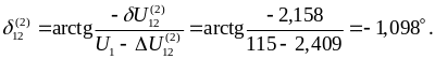 Уточненный на первой итерации расчета абсолютный угол напряжения узла 2 по отношению к базисному узлу 1