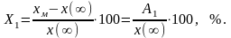 Динамическое отклонение (динамическая ошибка)X1 - величина, равная отношению первого максимального отклонения xм управляемой величины x(t) от ее установившегося значения x() к этому установившемуся значению: