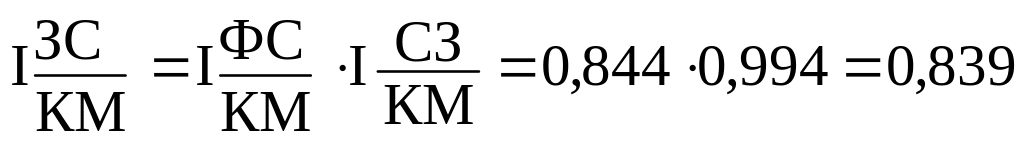 Використання індексів середніх величин. Аналіз динаміки середнього рівня здійснюють на основі побудови взаємозалежних індексів. Індекс, що характеризує зміну середнього рівня інтенсивного показника за рахунок зміни всіх факторів у цілому, дорівнює добутку індексів-співмножників, кожний з яких характеризує зміну лише одного фактора і вплив цієї зміни на динаміку середньої.