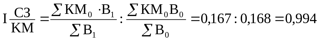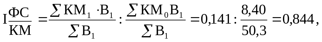 Середньозважений зведений індекс інтенсивного показника, тобто капіталовіддачі, обчислюємо за формулою середньогармонічного індексу: