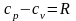 -разница между изобарной и изохорной теплоемкостью соответствуют газовой постоянной.