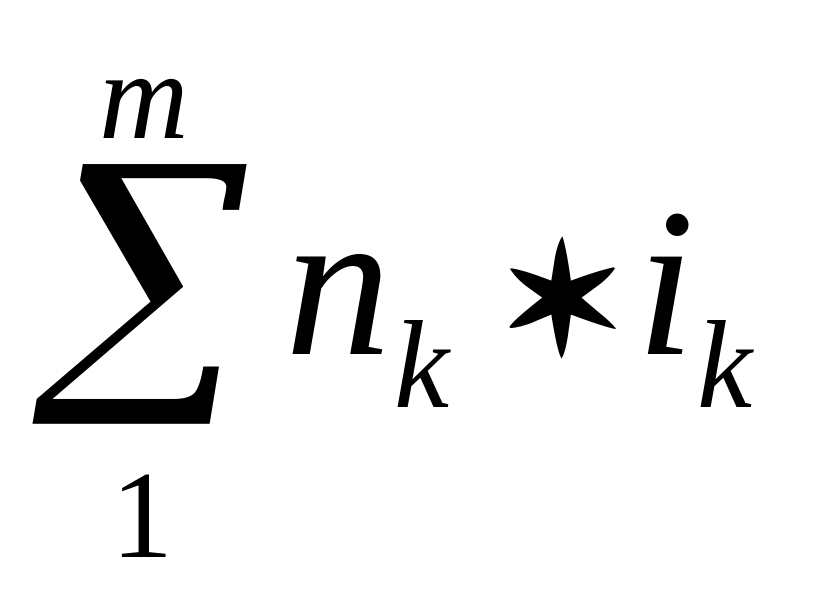 де ik – ставка простих відсотків для періоду k = ,m; nk – тривалість періоду k.