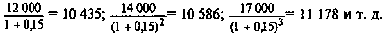 Сейчас мы овладеем применением методов срока окупаемости инвестиций на примере, все суммы в котором представлены в долларах, чтобы снять вопрос об инфляции. Сегодняшняя (при- веденная, или текущая) стоимость проекта — 50 тыс. ам. долл. Владелец считает для себя желательным и достаточным получе- ние 15-процентной прибыли (положи он эти деньги в банк, при- шлось бы, видимо, довольствоваться меньшим процентом). Не- обходимо узнать, когда денежные потоки доходов покроют де- нежные потоки расходов, т. е. определить срок окупаемости ин- вестиций, по следующим данным (ам. долл.):