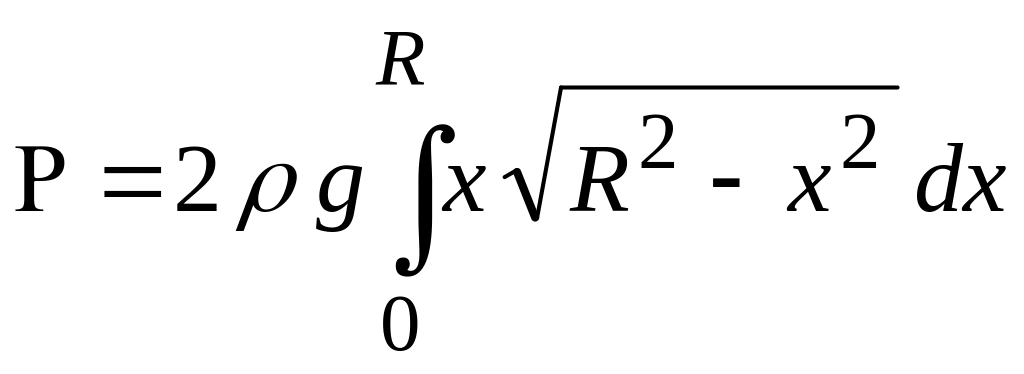 Пример 1. Вычислить давление жидкости на пластину, имеющую форму по-луокружности с радиусом , диаметр которой совпадает с поверхностью (Рис. 17).
