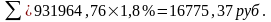 За межинвентаризационный период оборот по экстемпоральной рецептуре и ВАЗ составил 931964,76 руб. Норма естественной убыли – 1,8%.