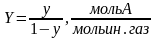 В этом случае концентрация абсорбируемого газа в газовой фазе по отношению к концентрации инертного газа составляет:Y=y/(1-y-yП)