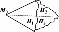 1) r'=r=3. Тогда система уравнений (1), (2), (4) имеет единственное решение, следовательно, плоскости П1 и П2 , П3 имеют единственную общую точку М0 , (см.рис.1);