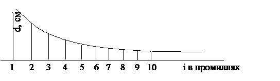 График заложений по уклонам, формула: d=h/i (заложение равно превышение на уклон).