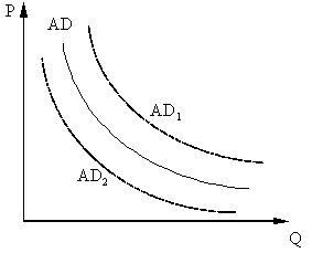 Під дією нецінових факторів крива сукупного попиту AD переміщується: