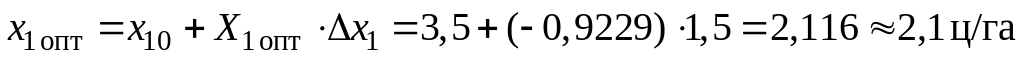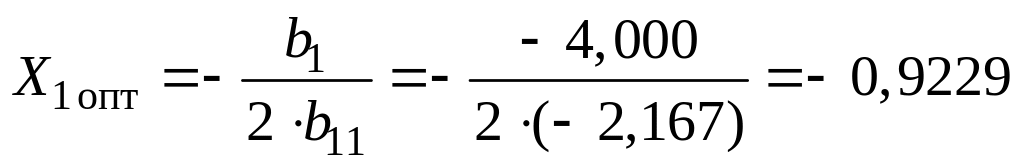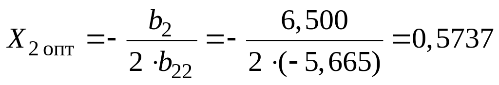 ‑ оптимальные значения натуральных факторов рассчитываем по уравнениям (7) – (9) и данным таблицы 4: