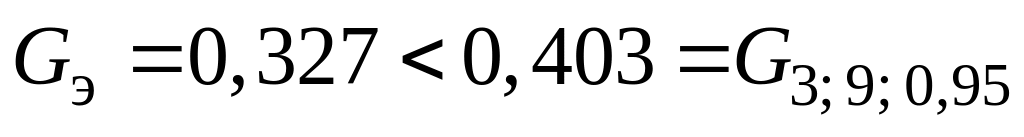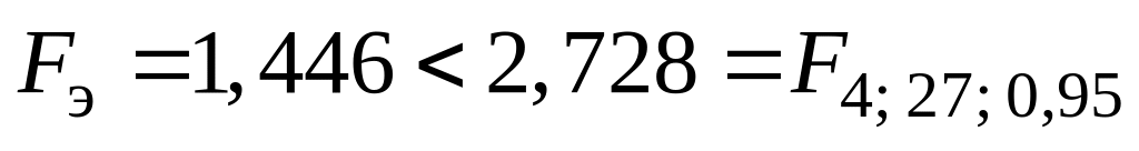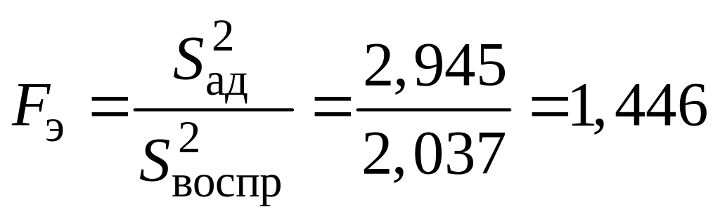 ‑ рассчитаем экспериментальное значение критерия Фишера (см. уравнение (42)):