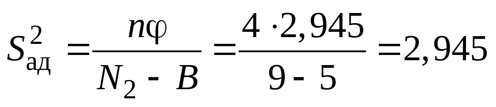 ‑ рассчитаем дисперсию адекватности и её числа степеней свободы (см. уравнения (39), (40)):