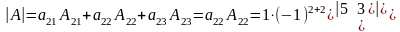 Определитель n-го порядка равен сумме попарных произведений элементов какой либо его строки (или столбца) на их алгебраические дополнения. Таким образом, любой определитель n-го порядка сводится к сумме n определителей n-1-го порядка. Вычислить определитель третьего порядка: