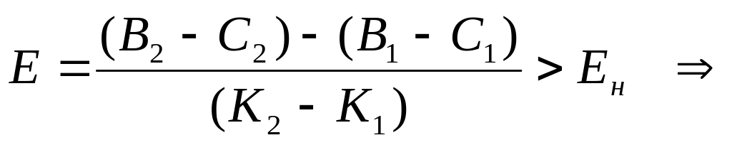 Исходя из условия выгодности более капиталоемкого варианта левая часть выражения (13) больше правой части. Поэтому, обобщив представленное выражение, окончательно получим критерий сравнительной экономической эффективности дополнительных капитальных вложений, который будет иметь вид: