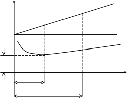 Существенные ограничения для критерия минимума приведенных затрат не всегда давало возможность отобрать лучший вариант проектного решения. Поэтому целесообразно рассмотреть возможность модификации минимума приведенных затрат и перехода к более универсальному критерию. Оценка сравнительной эффективности вариантов вложений, если условия 1 и 2 вопроса 2 будут нарушены, должна строится по критерию не минимума затрат, а максимума результата. Это легко можно доказать с помощью следующего рисунка.