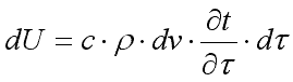 Здесь произведение dx·dy·dz представляет собой объем элементарного параллелепипеда dv. Количество теплоты, которое выделилось в элементарном объеме за счет внутренних источников:
