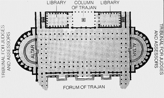 Это огромный дворцовый комплекс (215x118 м), в основу которого положен принцип планировки римского военного лагеря. Внешние стены дворца являлись одновременно крепостными стенами с башнями и воротами.корпуса для гвардии, провиантский склад, четырехколонный храм, мавзолей Диоклетиана, круглый внутри и восьмигранный снаружи. Новым архитектурным мотивом явилось применение во дворце Диоклетиана аркады на колоннах, а не на столбах, как это было раньше. Базилика Максенция и Константина3 нефа – 3 прохода.центральный – самый высокий и широкий.Апсида – задняя стенка, место для алтаря.Мужчины и женщины стояли в разных нефах