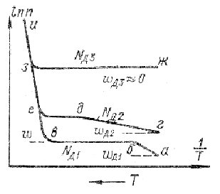 - •23. Температурная зависимость концентрации носителей заряда в полупроводнике