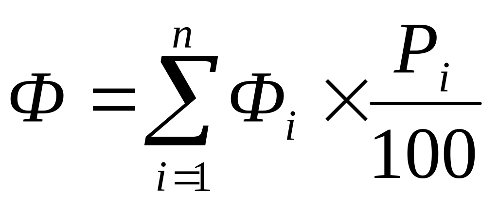 Средневзвешенный физический износ Ф рассчитывается на основе данных о фактическом физическом износе отдельных конструктивных элементов объекта и их удельном весе в его восстановительной стоимости по формуле: