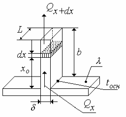 Пренебрегаем тепловым потоком, который рассеивает торец, а весь тепловой поток снимается с граней. Определить тепловой поток ребра.